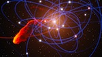 Loud and twisted: some supermassive black holes at the centers of galaxies have twisted magnetic fields so powerful they counteract the colossal pull of their gravity—allowing clouds of accreting gas or other objects literally to levitate temporarily in place above the black hole instead of plunging into the maw. That’s the conclusion of one UC Berkeley researcher and three coauthors after comparing their computational model to empirical measurements of not just one or two, but of 76 supermassive black holes in loud radio galaxies and blazars. The new findings may mean that theorists must re-evaluate their understanding of how supermassive black holes behave. Read the AstroShort “Magnetically Levitating Black Holes”