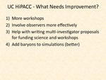 Roundtable discussion by UC-HiPACC campus and lab representatives of what has worked, what needs imp - 2014-03-21